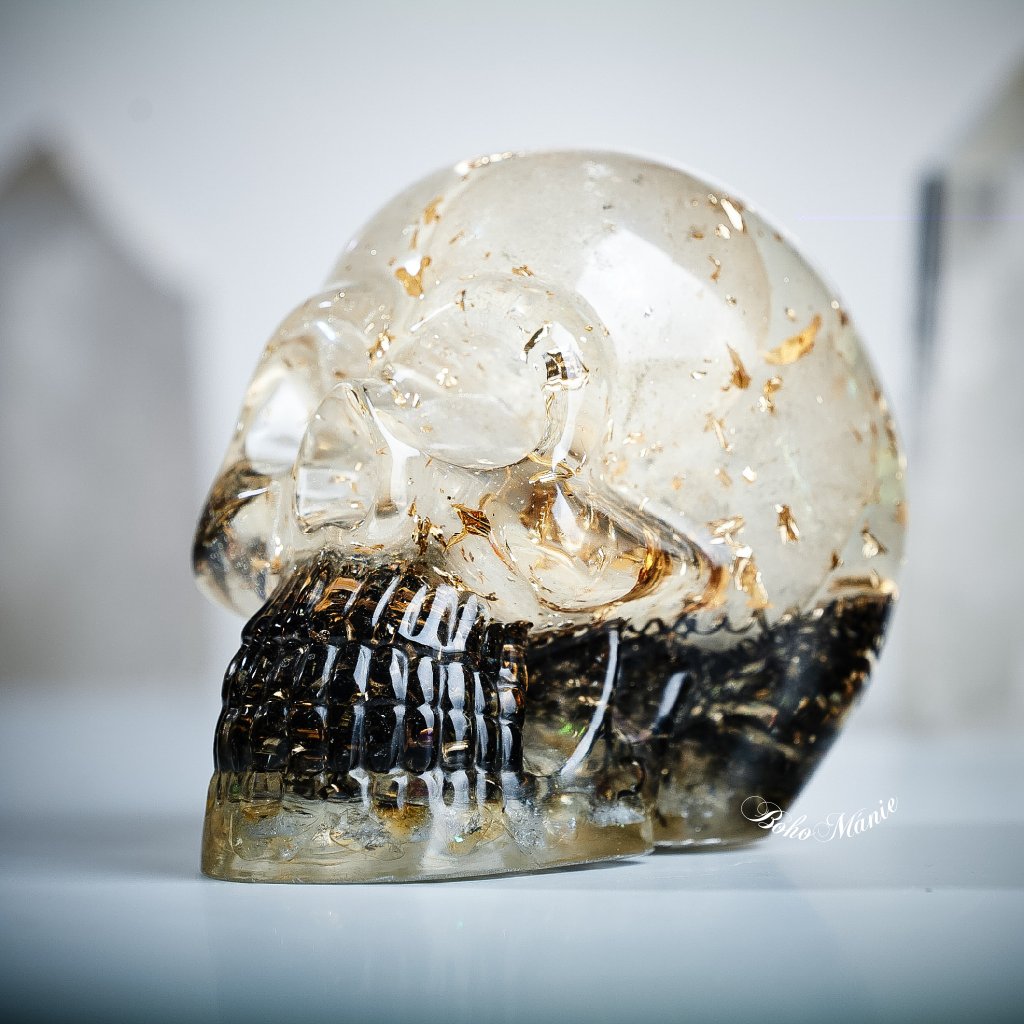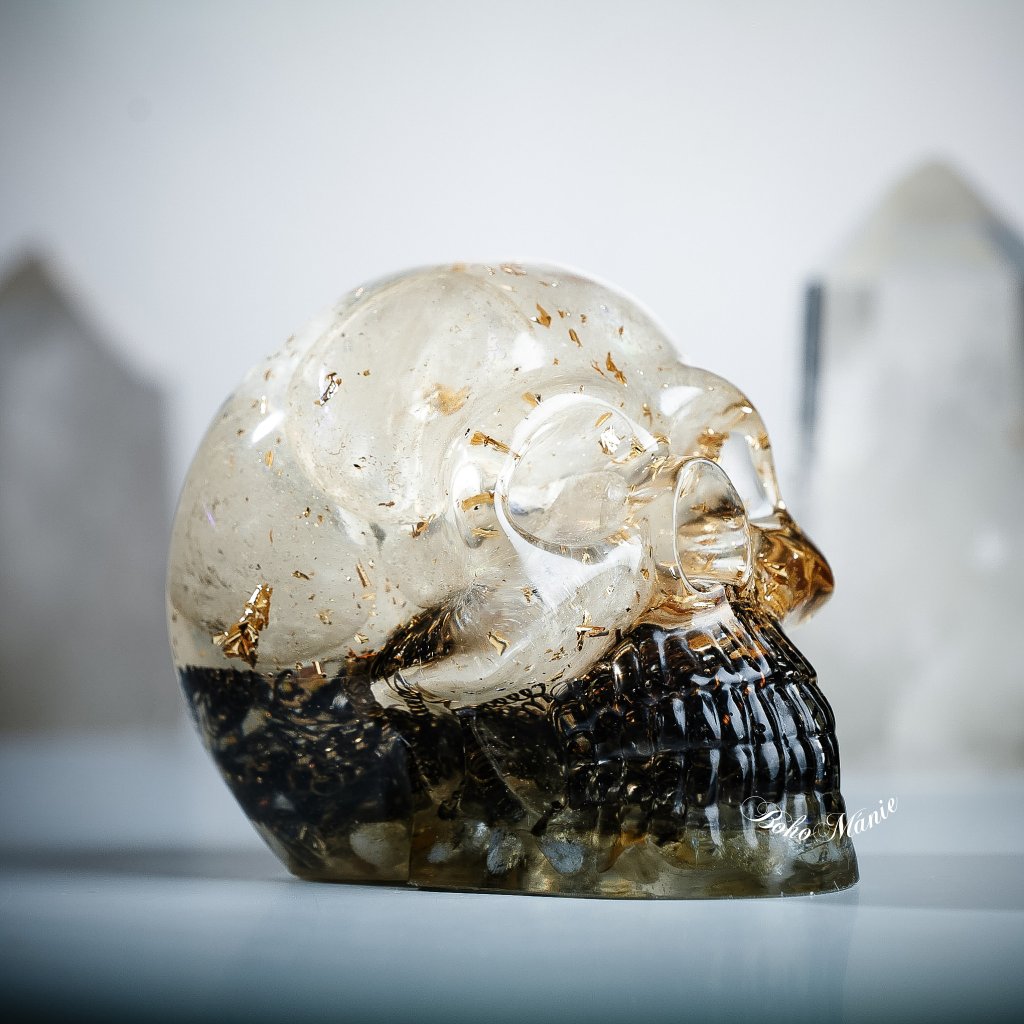 ČARODĚJNÍCKÁ LEBKA - ORGONIT AMULET * aura křišťál, citrín