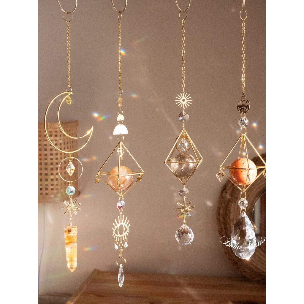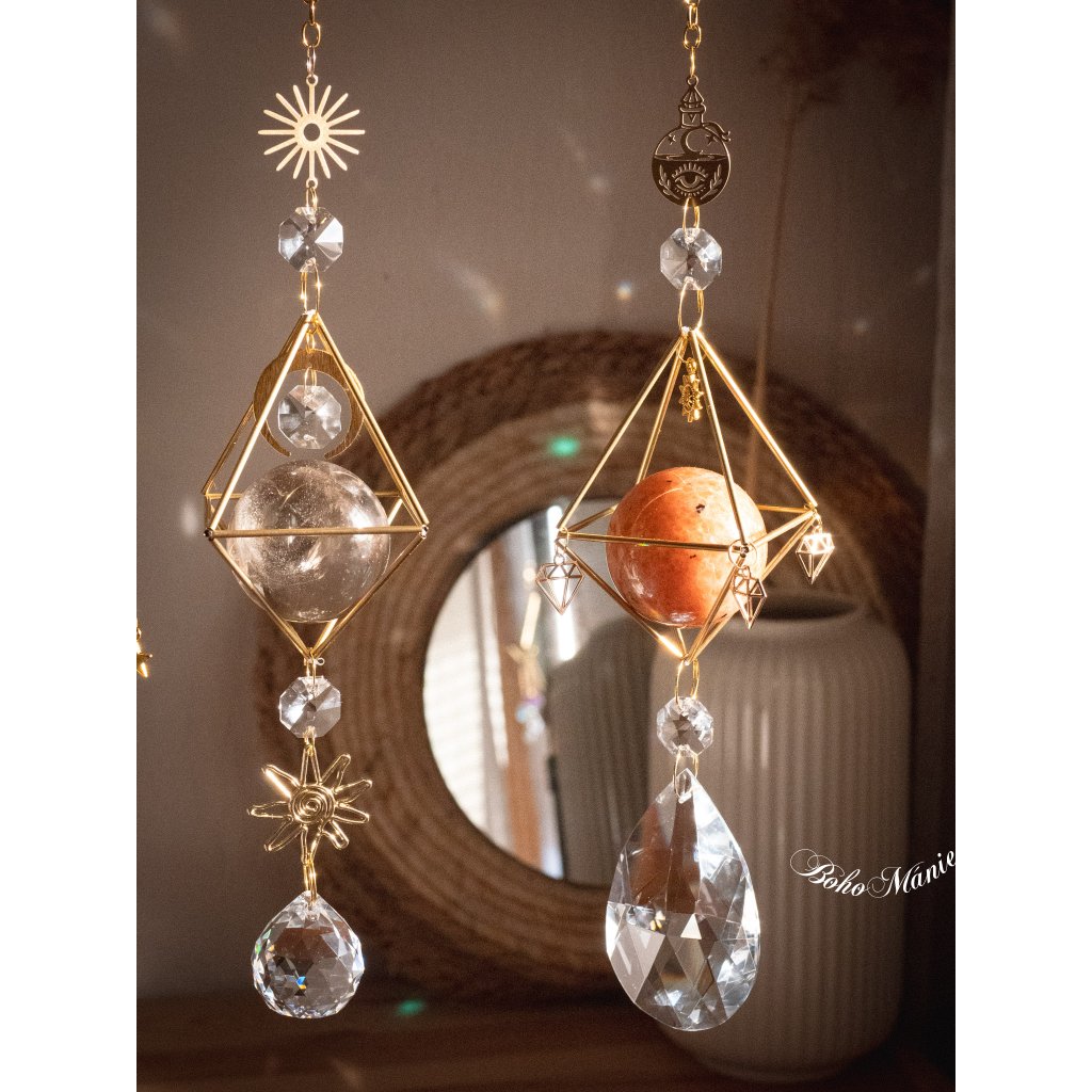 Lapač slunce na okno s feng shui křišťálem a kalcitem