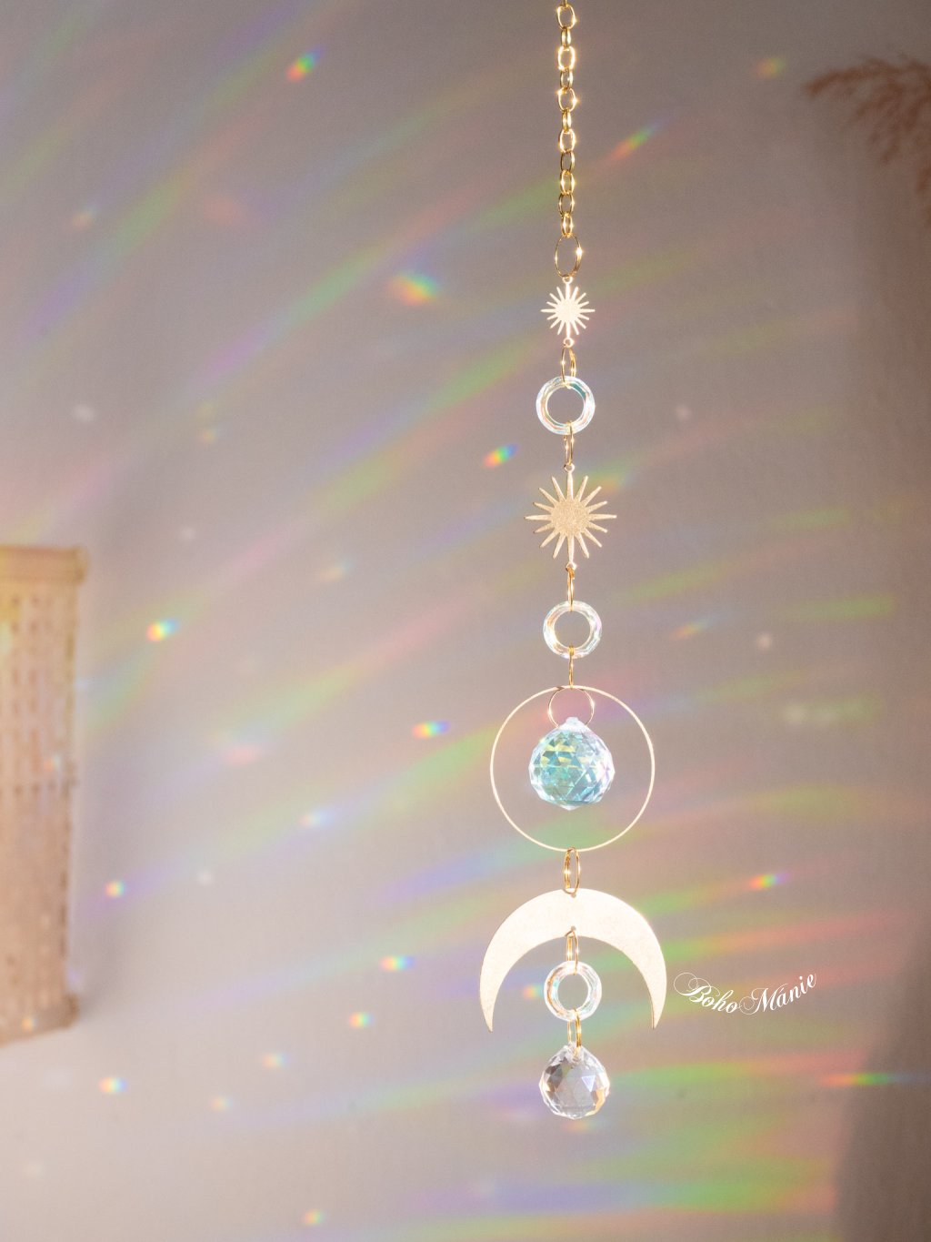 Křišťálový lapač, který rozjasní tvůj domov jemnou energií slunce a měsíce.