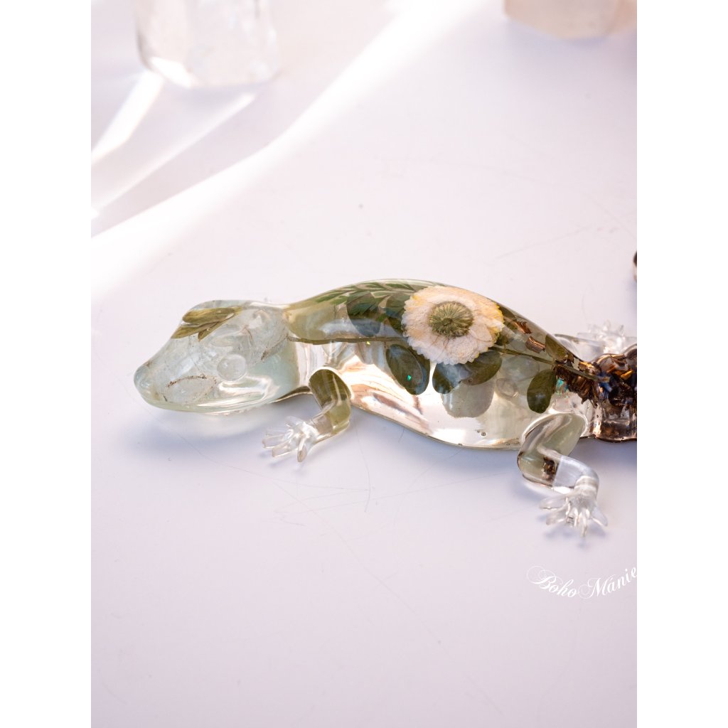 Amulet s akvamarínem s motivem gekončíka vznikl jako talisman, který ti připomíná, že i ve víru každodennosti můžeš dýchat volněji a jasněji. Akvamarín je často spojován s klidnou komunikací a čistotou myšlenek — a přesně tenhle pocit ti dokáže předat pokaždé, když jej vezmeš do ruky.