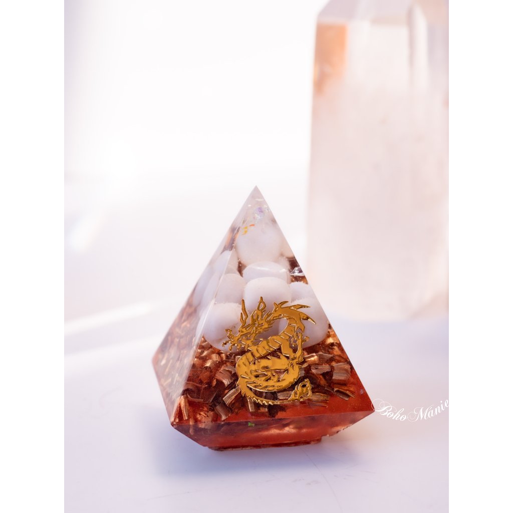 Orgonit je směs pryskyřice, kovu a minerálů, z jejichž spojení vzniká harmonická energie, která pozitivně ovlivňuje prostor kolem sebe. Vzniká tak jedinečný prostorový šperk – tichý zářič, který zjemňuje atmosféru a přináší do prostoru pocit klidu a harmonie.