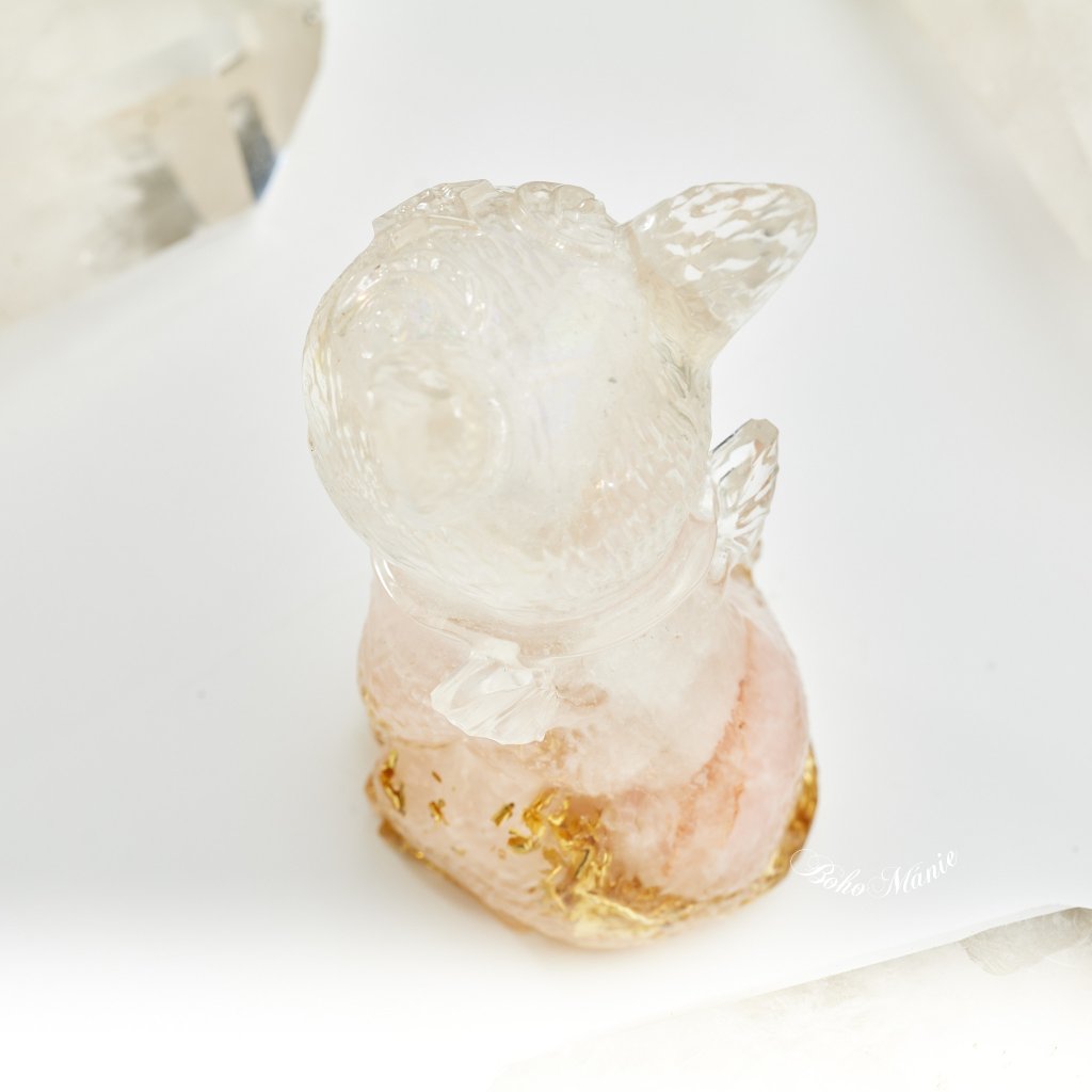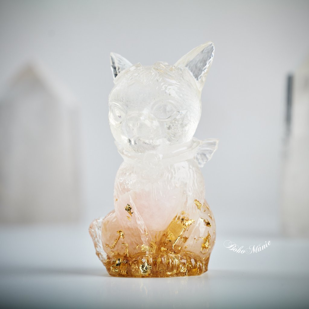 KOČKA - ORGONIT AMULET * růženín, křišťál