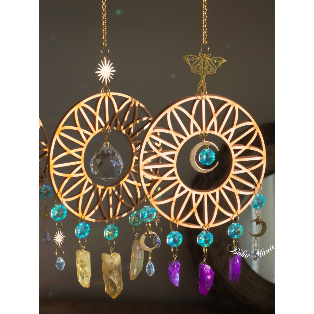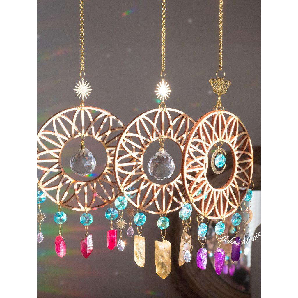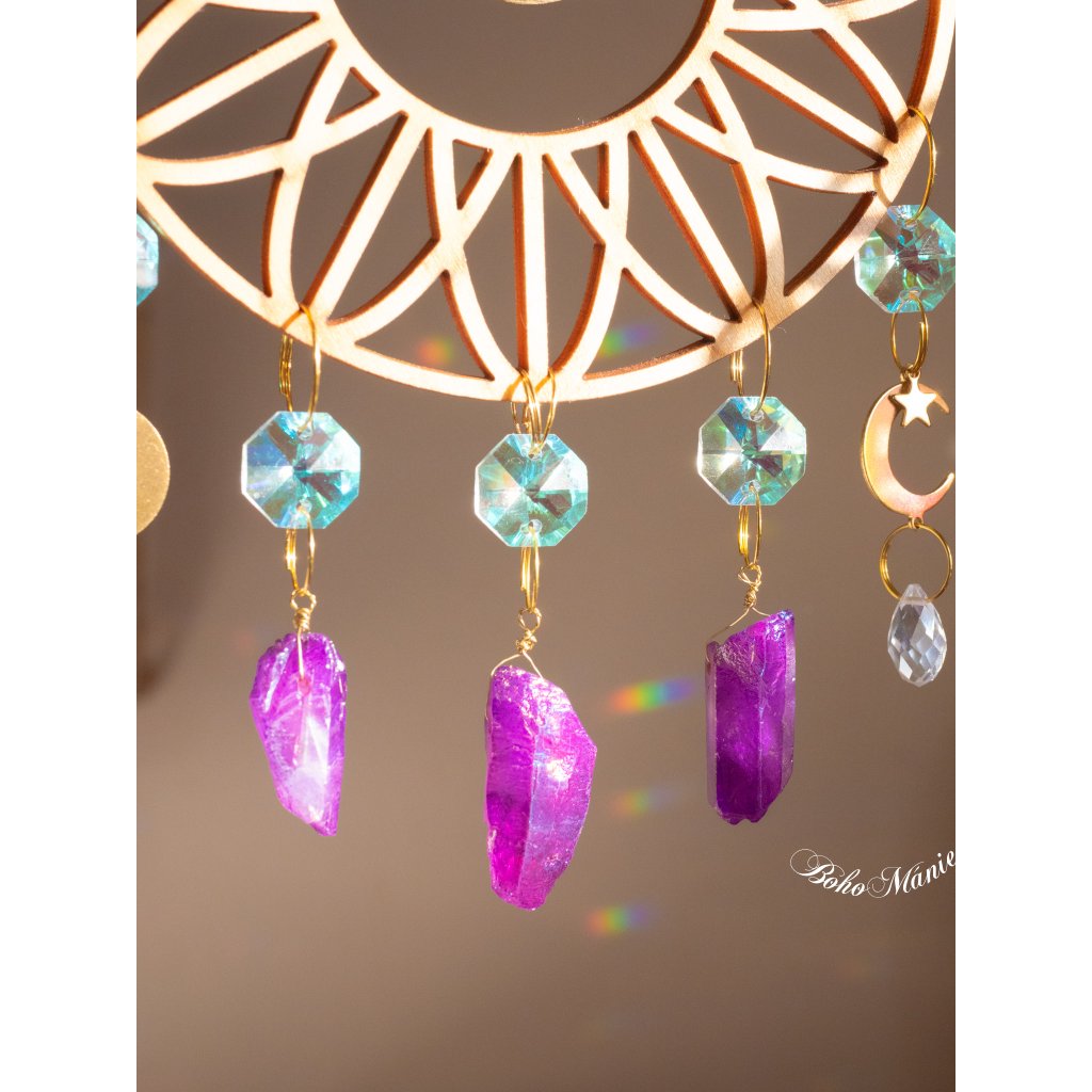 Lapač slunce na okno s feng shui křišťálem a přírodním barveným křišťálem