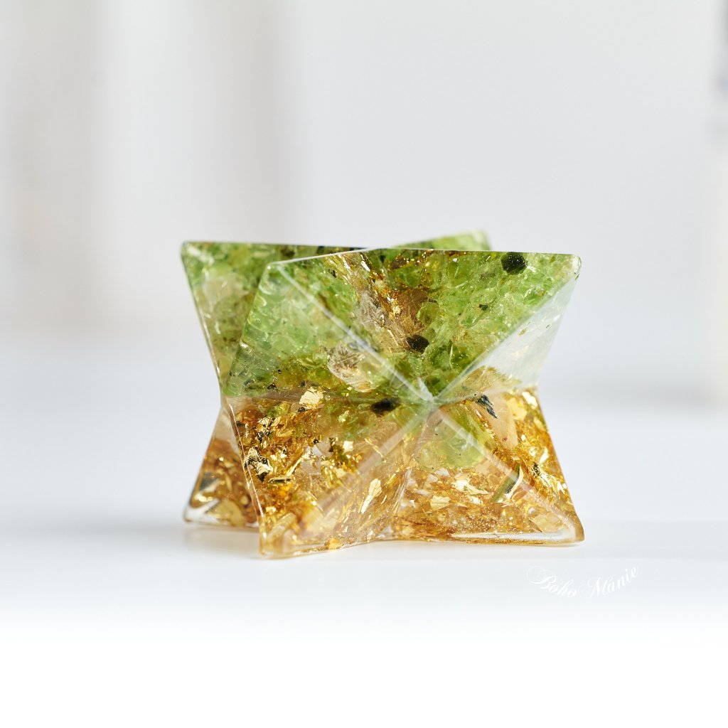 Tato merkaba spojuje olivín a křišťál, což je ideální kombinace pro ty, kteří hledají vyváženost a novou perspektivu. Je to energetický nástroj, který ti pomůže najít rovnováhu mezi tělem a duší, a přinese ti jasnost v každém kroku. S tímto orgonitem se vždy cítíš na správné cestě.