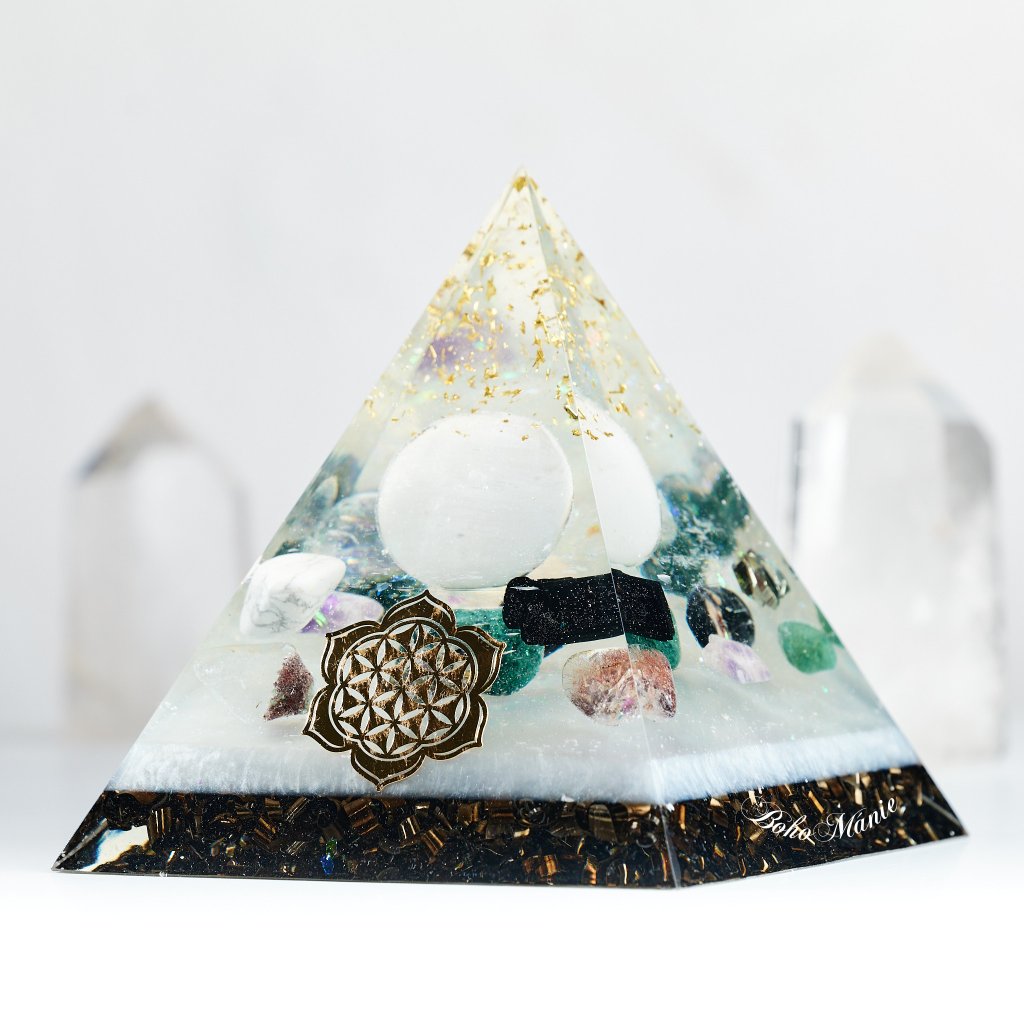 Orgonitová pyramida, která do prostoru přináší měsíční klid a vnitřní vyrovnání. Pomáhá očistit mysl, rozptýlit napětí a znovu se spojit s intuicí.