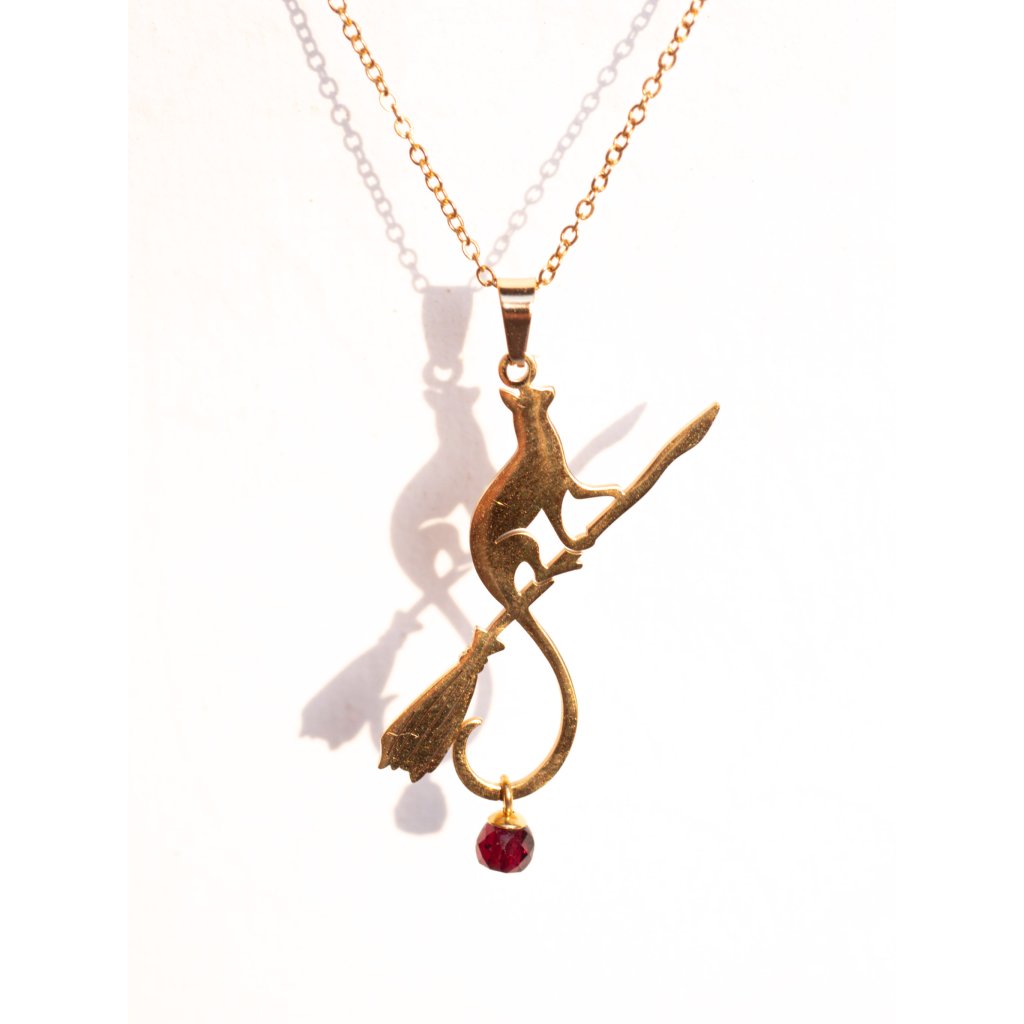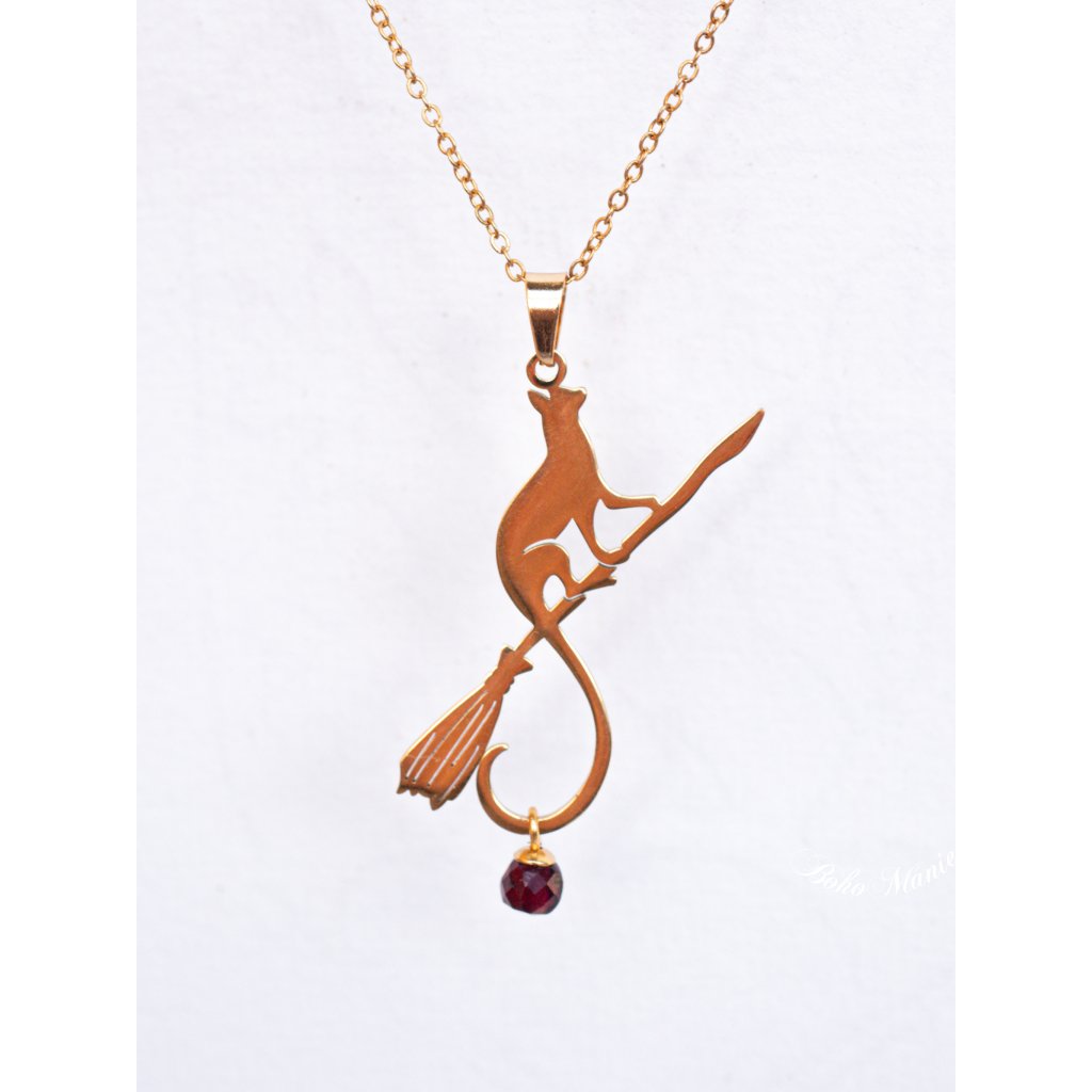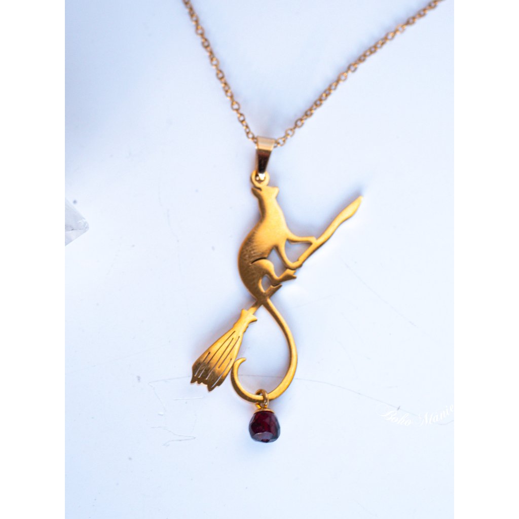 Náhrdelník s kočkou a přírodním granátem, který vnáší do dne teplo, odvahu a klidně pulzující sílu ukotvení.