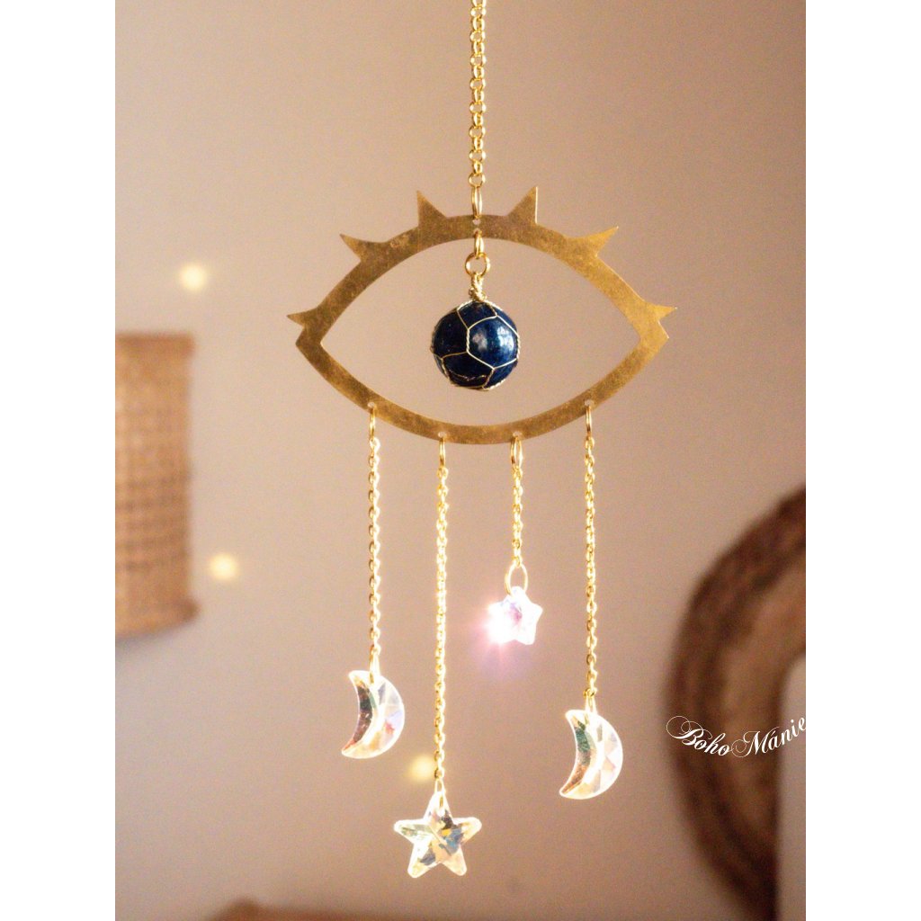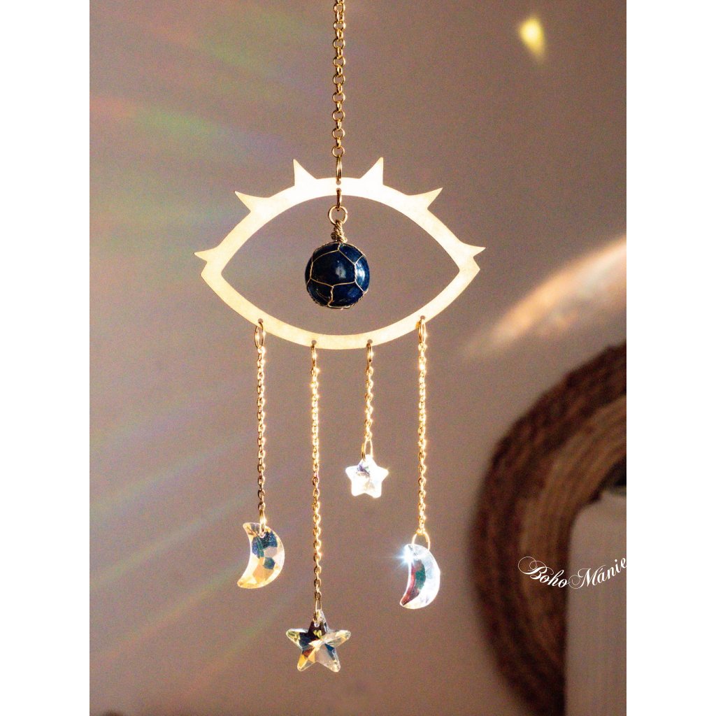Tento lapač slunce spojuje ochranný symbol oka s hlubokou modří lapisu lazuli. Světlo se v něm láme do hvězdných odlesků a přináší pocit klidu, důvěry a čisté intuice.