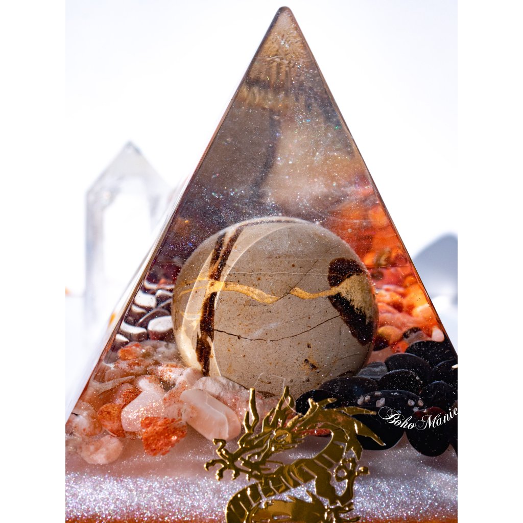 Ať už ji umístíš do obýváku, pracovny, nebo oltáři — tahle pyramida s dračím kamenem ti pomůže vytvořit prostor, ve kterém dýcháš zhluboka, poznáváš víc sebe a můžeš opět obnovit vnitřní rovnováhu.