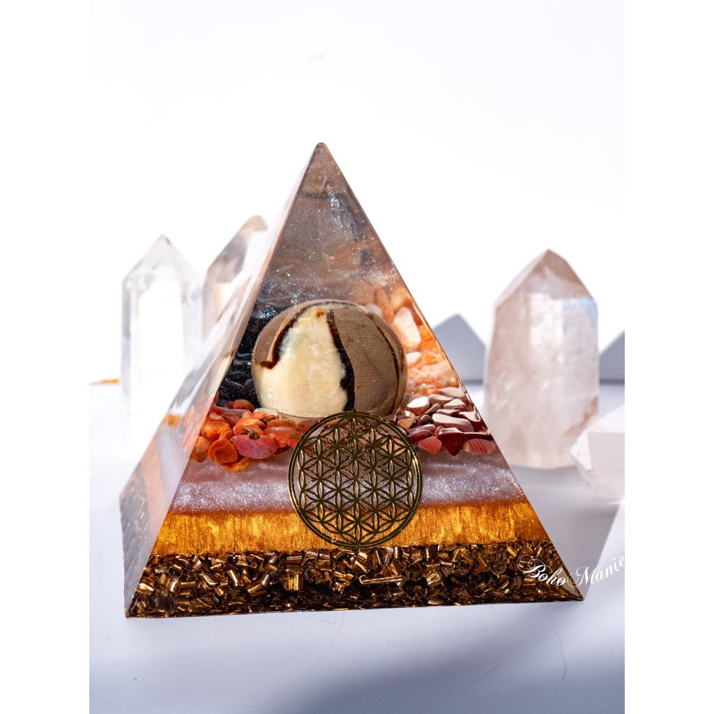 Orgonitová pyramida, která vnáší do prostoru klid a jas. Pomáhá ztišit mysl, posílit intuici a znovu se napojit na svůj vnitřní kompas.