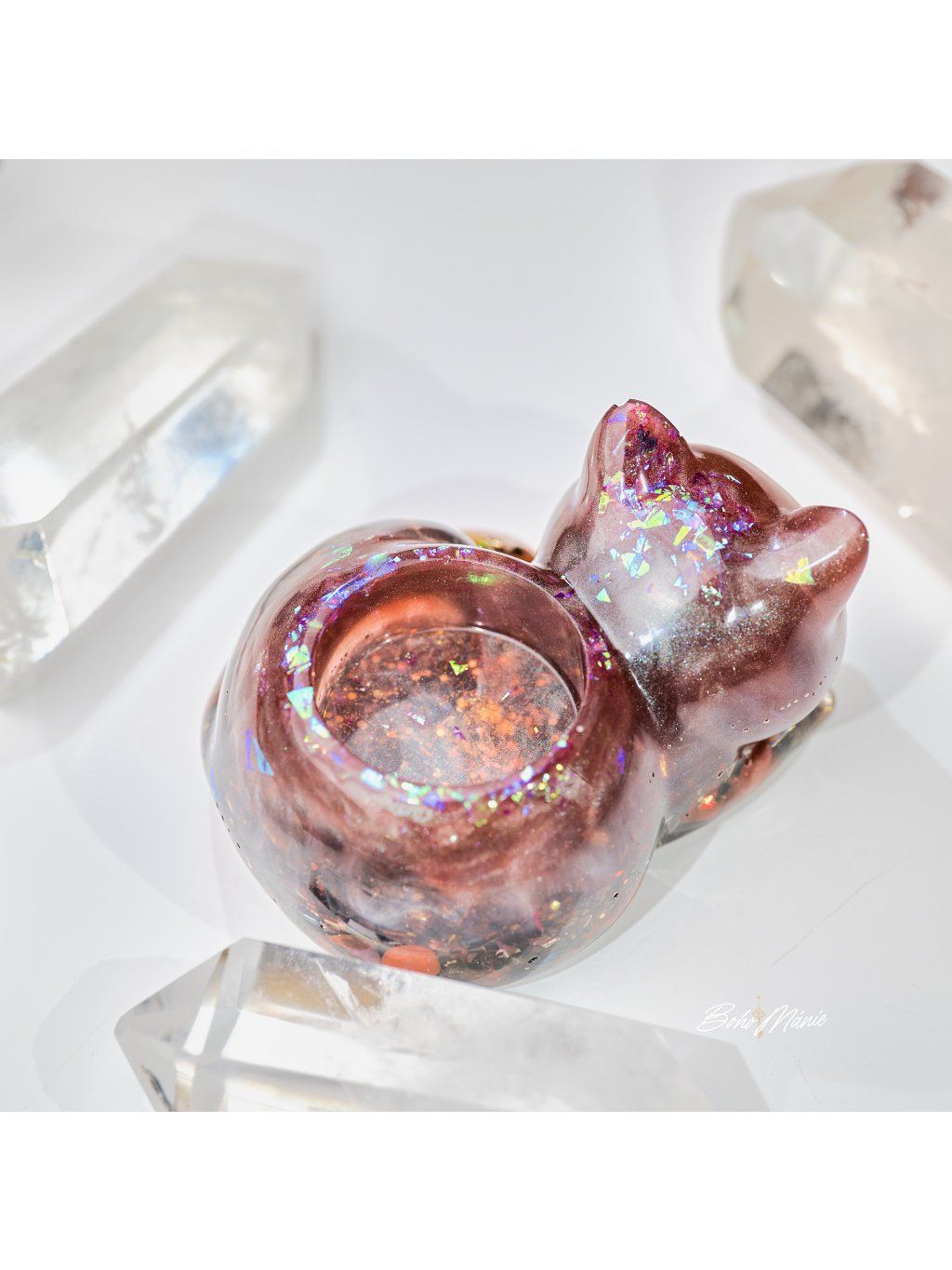 V kolekci Aura Amulet najdeš orgonitové pyramidy, srdce i menší orgonitové dekorace. Každý orgonit je originál – kombinace minerálů, kovových prvků a tvaru vytváří jedinečný celek, který může být součástí interiéru, osobního prostoru nebo meditačního koutku.