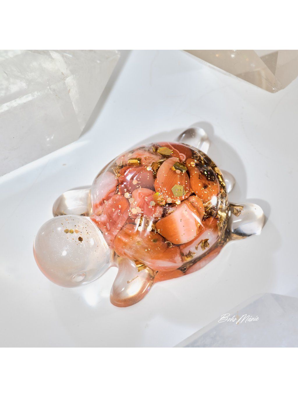 Malý orgonit s karneolem ve tvaru želvy, ideální do kapsy nebo kabelky. Slouží jako osobní kotva, která pomáhá udržet jasnost, stabilitu a soustředění v běžném dni.
