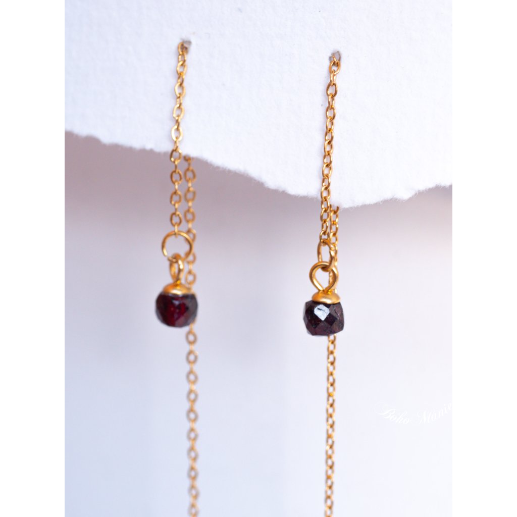 Řetízkové náušnice s přírodním granátem – hřejivý, zemitý šperk, který vnáší do dne sílu, teplo a jemnou vnitřní odvahu.