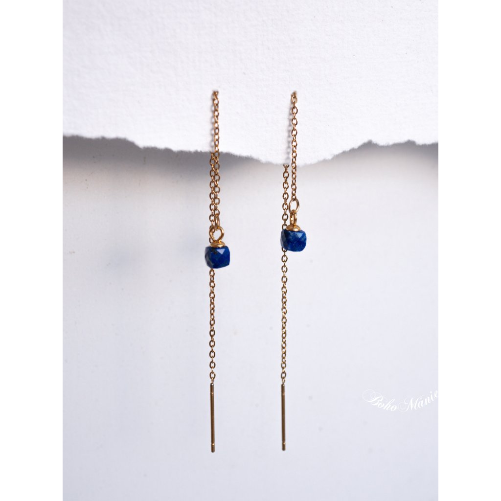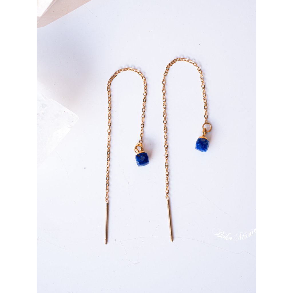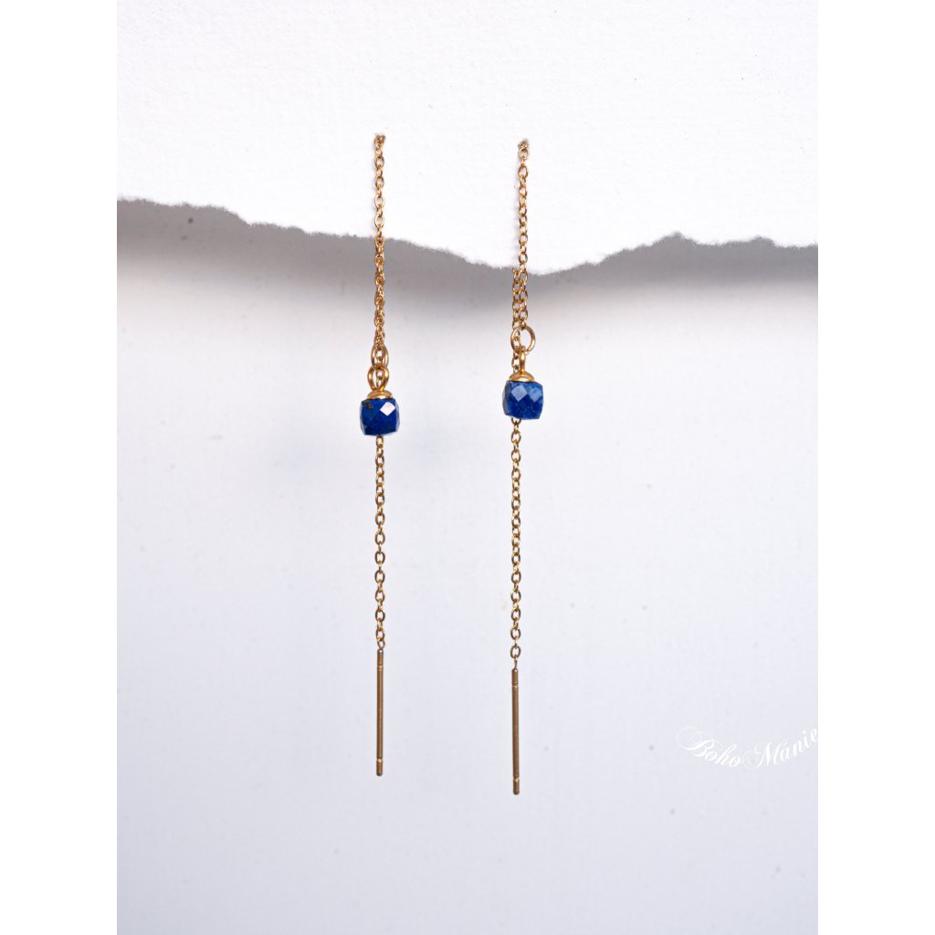 Řetízkové náušnice s lapisem lazuli – klidný, elegantní šperk, který podporuje jasnost, soustředění a vnitřní nadhled.