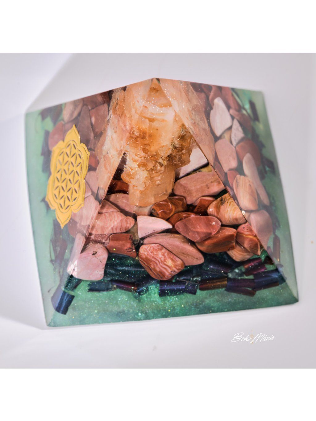 Orgonit je unikátní směs pryskyřice, kovových částí a drahých kamenů. Tento prostorový zářič přeměňuje negativní energii na pozitivní a podporuje harmonii ve tvém okolí. Svým složením a energií připomíná „živý kámen“, který dokáže vytvořit klidnou atmosféru. Zároveň je nádherným prostorovým šperkem, který ozdobí tvůj domov. Každý orgonit je ručně vyráběný originál s jedinečnou energií i příběhem.