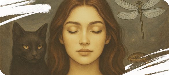 Kočka, had a vážka jsou tři tváře, v nichž může Štír poznat sám sebe – instinkt ticha, sílu proměny i lehkost plynutí.
